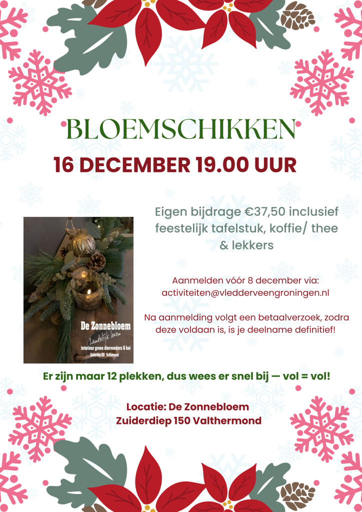 De werkgroep activiteiten heeft weer een mooie activiteit georganiseerd. Wil je hieraan meedoen geeft je dan snel op, voor het maken van een mooie bloemdecoratie.